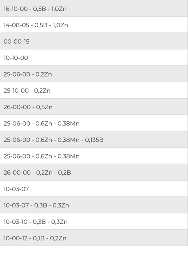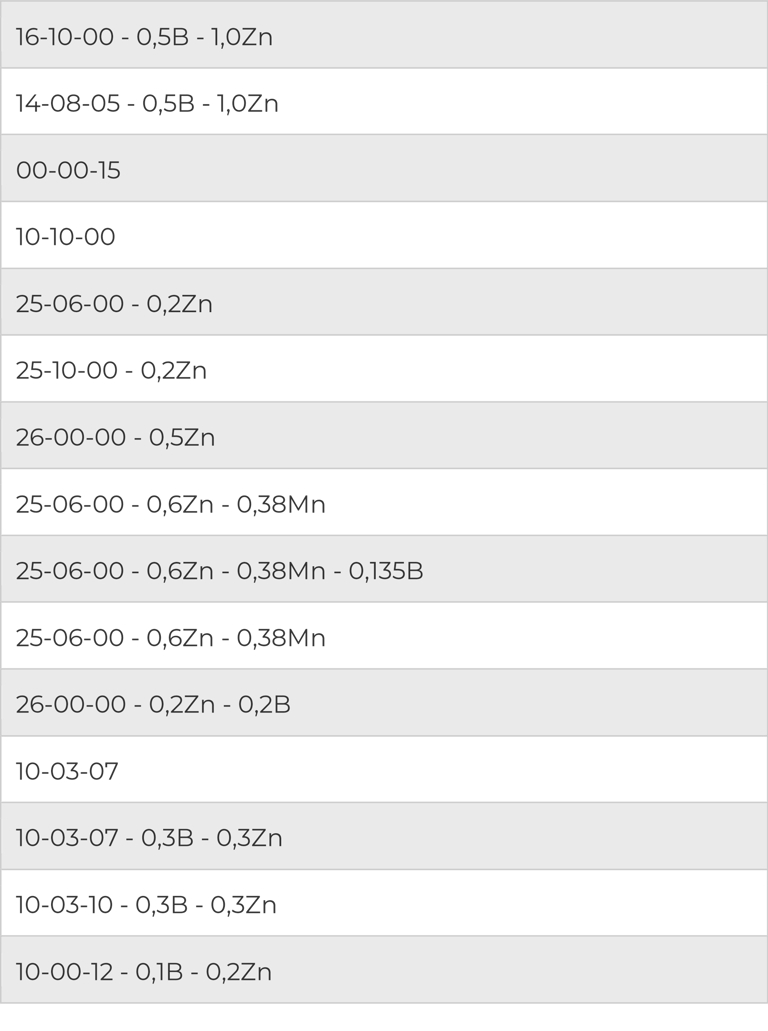Formulamos as concentrações de NPK de acordo com a necessidade: